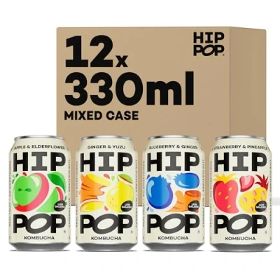 Hip Pop Kombucha, Mixed Flavour Case, Low Calorie, 100% Natural, Vegan, 12 x 330 ml