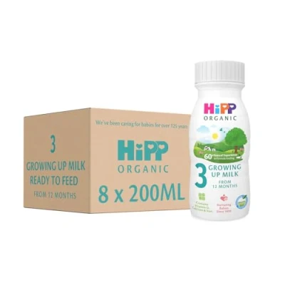 HiPP Organic 3 Growing up Baby Milk Ready to feed liquid formula, From 12th months 200ml (Pack of 8)
