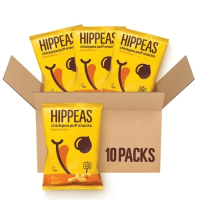 HIPPEAS Cheese Flavoured Chickpea Puff Vegan Crisps, 10 x 78g Sharing Bags, Plant Based, Source of Protein & Fibre, Free from Gluten Artificial Flavours, Light Crunchy, 91 calories per serving