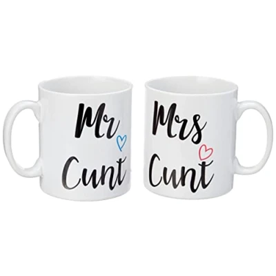 His and Hers Funny Mug Set Joke Gifts Mr Cunt Mrs Present Anniversary Birthday Christmas Coffee Cups Wedding Gift WSDMUG1366