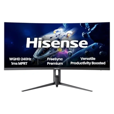 Level up your gaming setup with this Hisense curved monitor. The 34" Quad HD display pulls you right into the action with sharp details and rich, lifelike colours. With a lightning-fast 240 Hz refresh rate and 1 ms response time, every frame stays smooth and blur-free - perfect for fast-paced titles. And the AMD FreeSync Premium keeps the action crisp and tear-free, so you can stay locked in every step of the way.Good to know- The 1000R curve wraps around your vision for a truly immersive view - Its two HDMI ports mean you can plug in both your console and your PC- The built-in speakers keep your desk tidy - no need for extra kit- Adjust the height or mount it on the wall to get your setup exactly how you like it