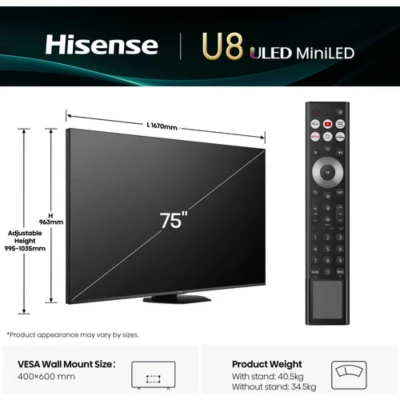 U8QTUK 75" 165Hz MiniLED Smart AI TV with Freely - 75U8QTUK