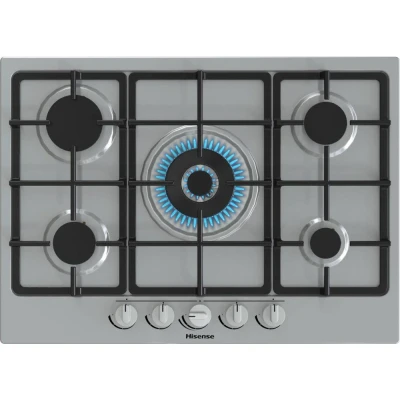 Hisense GM773XF 75cm 5 Burners Built in Gas Hob with Easy Clean Surface, Wok Burner Stainless steel