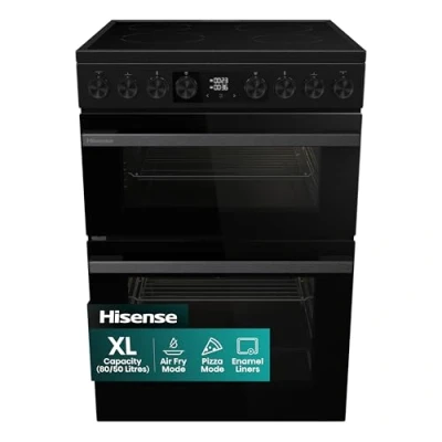 Hisense HDUKC60B 60cm Electric Cooker with Ceramic Hob Black, A Rated Double Oven 50L/80L [Energy Class A]