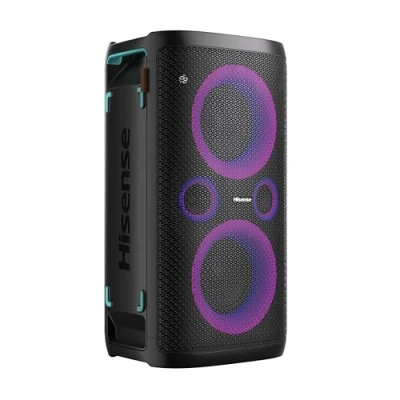 This Hisense Party Storm speaker is your ultimate sidekick for unforgettable nights, garden parties, and spontaneous karaoke sessions. With a mighty 300 W of sound power, it delivers room-filling sound and deep, thumping bass that gets everyone on their feet. No plug? No problem. With up to 15 hours of battery life, you can keep the music going all day and well into the night. And if you fancy a sing-along, switch to karaoke mode for an epic solo or fun duet.Good to know- Thanks to its water-resistant (IPX4) top panel, a few splashes or spills won't ruin the fun- If you're running low on battery, just pop your phone on top and charge it wirelessly- Built-in lighting pulses and grooves to the beat to add to the party vibe- Add your own twist to the music with five DJ effects