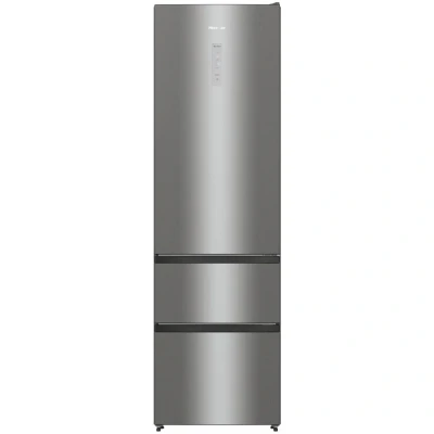 The Hisense RM469N4ACDUK Fridge Freezer features a sleek 2m tall, 60cm wide design with a 368-litre capacity, Total No Frost technology, Multi Air Flow cooling, and a D energy rating—ideal for families seeking maximum storage and efficiency in a stylish stainless steel finish.
