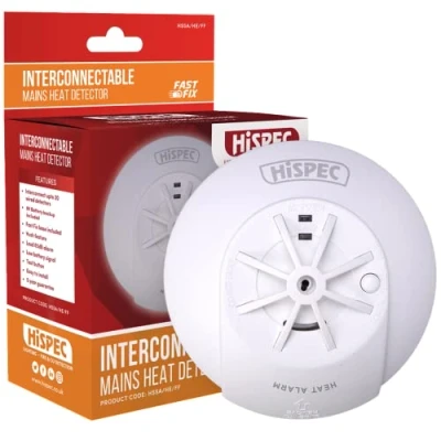 Interconnectable Fast Fix Mains Heat Detector with 9V Backup Battery Included: Loud 85dB Alarm Test Function and Hush feature, Weight: 0.35714886444 pounds, Manufacturer: hispec