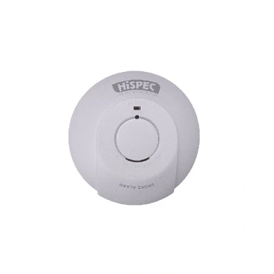 Hispec Battery Operated Smoke Detector (HSA/BP). The Hispec smoke alarm is suitable for use in all domestic dwellings, including houses, apartments and mobile homes. 9 V Battery included and is located at the back of the sensor for easy removal and maintenance. Insect proof. Easy to install. 3 Years guarantee from the manufacturer. Test function and hush feature. Smoke alarm. Supplier part number is HSA/BP. 9 V battery powered. Designed for easy installation. Test function. Insect proof. Genuine brand new Hispec product, covered by a Hispec manufacturer's guarantee.