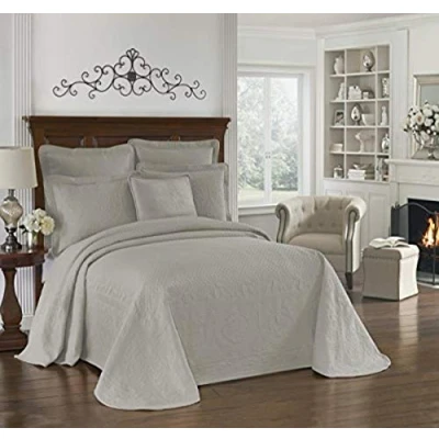 Historic Charleston King Charles Modern Farmhouse Floral Matelasse Bedspread, 100% Cotton Breathable Bedding, Full/Queen, Grey