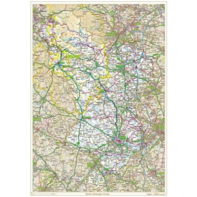 A high-quality historic county wall map. Clearly showing the historic Derbyshire area on a detailed up to date map, the area outside the traditional county border is faded out with a subtle sepia tint. A0 - 1189mm x 841mm Plastic coated waterproof / wipeable