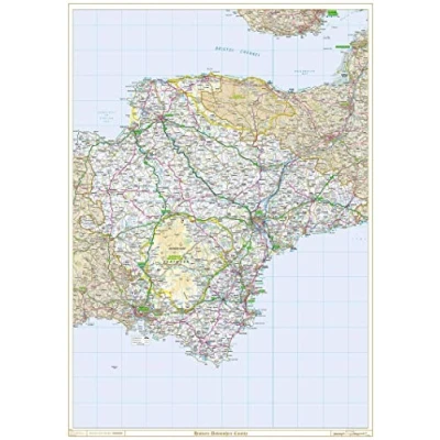 A high-quality historic county wall map. Clearly showing the historic Devonshire area on a detailed up to date map, the area outside the traditional county border is faded out with a subtle sepia tint. A0 - 1189mm x 841mm Plastic coated waterproof / wipeable