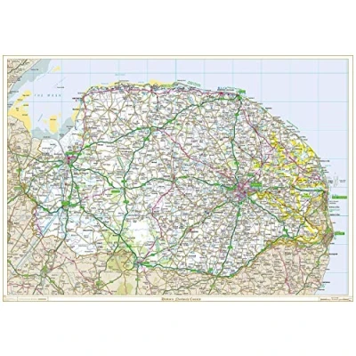 A high-quality historic county wall map. Clearly showing the historic Norfolk area on a detailed up to date map, the area outside the traditional county border is faded out with a subtle sepia tint. A0 - 1189mm x 841mm Plastic coated waterproof / wipeable