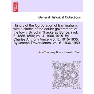 History of the Corporation Birmingham; with a sketch earlier government town. By John Thackeray Bunce. (vol. 3. 1885 1899; vol. 4. ... Joseph Trevor Jones. 6. 1936 1950.