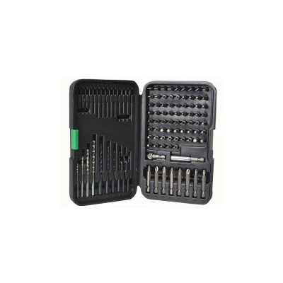 General description This comprehensive Hitachi Drill & Bit Set includes a variety of high-quality bits suitable for drilling into metal, wood, plastic, and masonry, as well as for screwdriving tasks. All pieces are securely stored in a compact carry case with a clasp for easy organization and transport. Technical specifications 20 x HSS black oxide drill bits (sizes: 1mm, 1.5mm, 2mm, 3mm, 3.5mm, 4mm, 4.5mm, 5mm, 6mm) 4 x Carbide-tipped masonry bits (sizes: 3mm, 4mm, 5mm, 6mm) 1 x Countersink insert bit (12.7mm) 19 x 25mm Phillips bits (PHO: 3, PH1: 4, PH2: 8, PH3: 4) 11 x 25mm Pozidriv bits (PZ1: 3, PZ2: 5, PZ3: 3) 14 x 25mm Torx bits (T10: 2, T15: 2, T20: 2, T25: 2, T27: 2, T30: 2, T40: 2) 14 x 25mm Slotted bits (3mm: 3, 5mm: 3, 6mm: 4, 6.5mm: 4) 3 x 25mm Square bits (S1, S2, S3) 7 x 25mm Hex bits (sizes: 1.5mm, 2mm, 2.5mm, 3mm, 4mm, 5mm, 6mm) 3 x 50mm Phillips bits (PH1, PH2, PH3) 3 x 50mm Pozidriv bits (PZ1, PZ2, PZ3) 2 x 50mm Torx bits (T20, T25) 1 x 60mm chrome plated magnetic