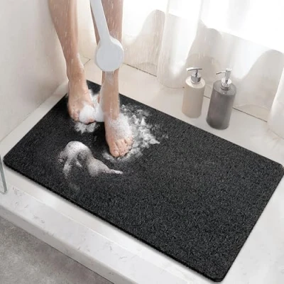 No Suction Cups: Our non slip shower mat are designed with a no suction cups anti-slip layer, which helps hold shower floor mat firmly in place while being gentle on the bathtub. Instead of traditional bath mats with difficult cleaning suction cups, Our mat would not slide around and damage your tub or floor surface. Non Slip and Safety: Featuring more secure and durable plaid backings, our anti slip shower mat remains steadily in place even on wet surfaces. The texture on the top surface of loofah shower mat enhances friction to keep you from slipping or falling in the bathtub. Highly Efficient Drainage: Hollow loop surface and lattice bottom create hundreds of drain holes allows water and air to circulate which helps prevent water and stains buildup and keep the bath mat dry and clean quickly. Premium Quality for Maximum Comfort: High quality soft PVC loofah shower mat for textured tub surface with ideal thickness will be comfortable for your shower in bare feet, gently massages your feet and exfoliating your skin, keep you away from cold floor. Phthalate Free and odorless. Great for the elderly, baby and young kids. Easy to Clean and Fast Drying: This bath tub mat non slip is easy to clean, simply rinse the foam or hair off the mat with the showerhead and hang it in a ventilated area to dry. Fast drying and keep its fresh appearance, easy maintenance, too. Trimmable and Perfect Sizes: Customizable non slip bath mat! Trim to your desire size and shape make the mat fit perfectly in any corner of your house. This bathtub mat for shower comes in 60 x 40 CM, which fits for most bathtubs and floor. Available in 4 popular colors to match virtually any bathroom decor theme, perfect choice for home, gym, or spa.