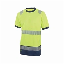 Two Tone High visibility short sleeve t-shirt 100% Bird Eye Polyester fabric Reflective tape Certification Code: BSCNT01 Conforms to EN ISO 20471 Class 2 By using segmented, heat applied tape, the garment is less restrictive than garments where traditional stitched tape has been used Improves the washing durability on stitched tape Improved breathability by using segmented, heat applied tape Produces a modern, comfortable garment