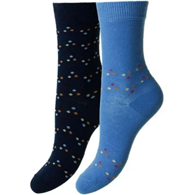 HJ Hall Cotton Rich HJ7141/2 Spot Design Ladies Socks / 2 Pair Pack/UK 4 7 Eur 37 40 (Navy/Blue)