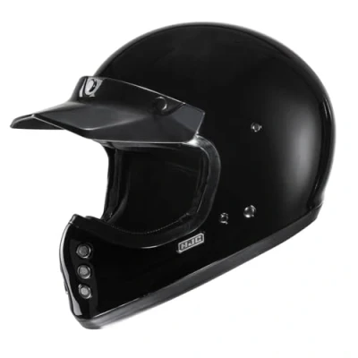 The HJC V60 motorcycle helmet stands for vintage style with modern features. Inspired by the original FG-01 from the 1980s, it features a lightweight fiberglass composite shell and a large internal IS-10 sun visor for comfort and safety. The built-in speaker pockets, removable interior, and cheek pads with emergency release provide safety features that make this helmet an outstanding companion.