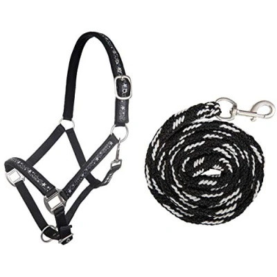 HKM 10025 halter set stars, and cord, carabiner Clasp Black/Silver, Warmblood