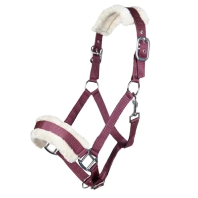 HKM 11796 Bischofshofen Headcollar Plush Padding Horse Halter Wine Red, Warmblood
