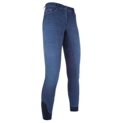 Hkm Adult Jodhpurs Summer Denim Easy 3/4 Silicone Trim 6100 Trousers, Blue, 128