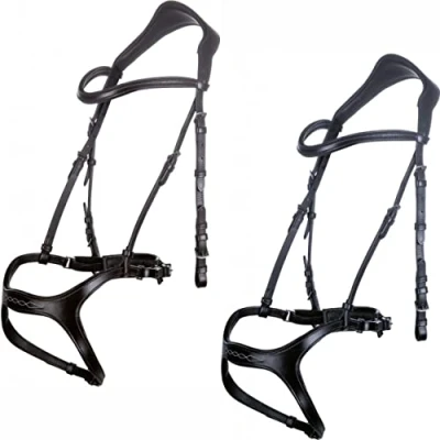 Anatomically shaped for ideal fit Wide headpiece with ear cutouts Switching fastening Reins made from woven straps with leather stoppers