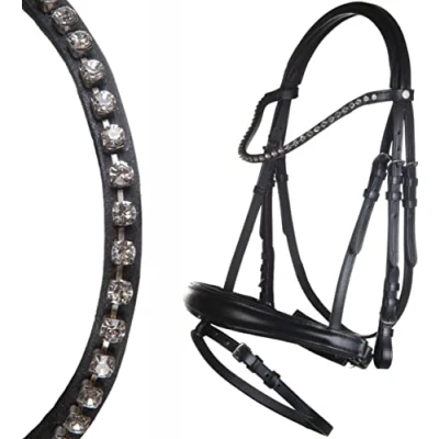 Browband and noseband have soft padding Switching fastening Reins with leather stoppers Browband with rhinestones