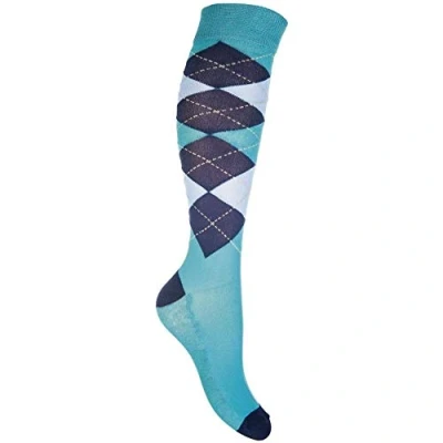 HKM Reitsocken Check Classico Socks Aqua/Dark Blue M