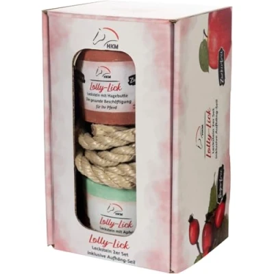 HKM Lolly Lick Lickstone set of 2 pcs with rope Rose Hip/Apple One Size