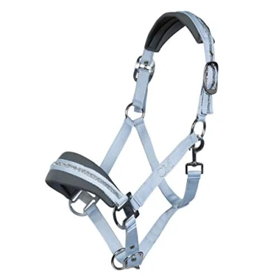 Continuous, variable adjustment; sturdy, silver-coloured fittings; padded nose and headpiece; can be opened with carabiner hook; thick padding; adjustable headpiece on both sides High quality 100% polypropylene Matching lead rope available
