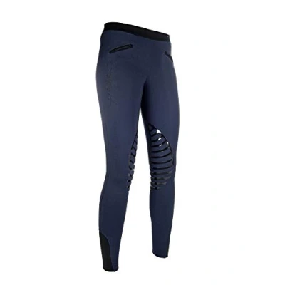 Breathable and skin-friendly riding leggings with knee patches made of silicone in high quality Stretch - Material: bi-elastic, comfort knitwear Leggings with elastic leg cuffs and two front pockets with zip Silicone trim: good grip on the saddle and no chafing on the knee Material: 65% cotton, 30% nylon, 5% elastane; machine washable at 30 degrees, can be tumble dried