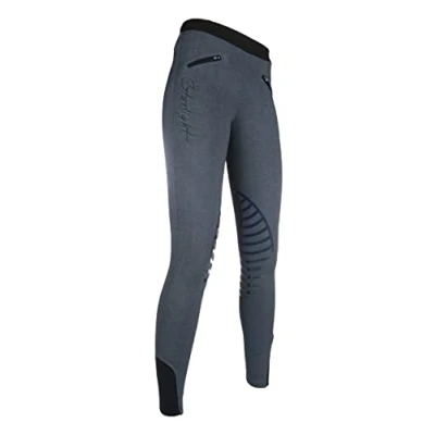 Hkm Starlight 9228 Riding Leggings Silicone Knee Trim Girls, Grey Melange/Black, 158/164