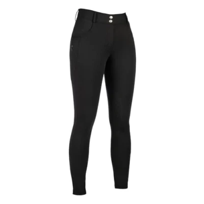 HKM Women's Ari Mid Rise Silicone Knee Patch Riding Breeches, Black, 32