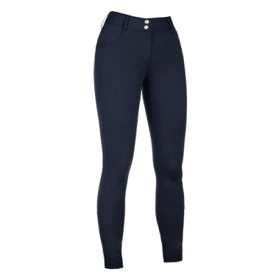 HKM Women's Ari Mid Rise Silicone Knee Patch Riding Breeches, Deep Blue, 40