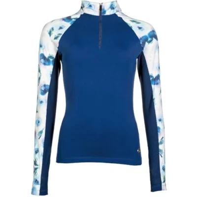 HKM Women's Essentials Flower Functional Shirt, Royal Blue/Light Blue, S
