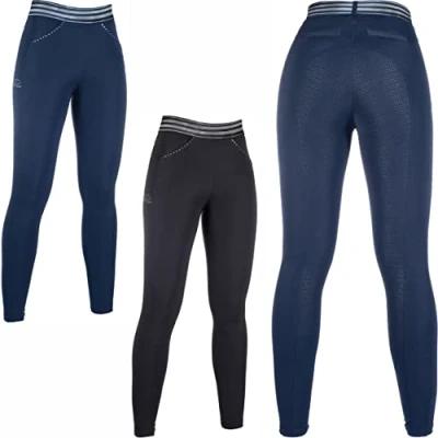 HKM Women's Pull On Silicone Full seat Riding Leggings, Deep Blue, 26/28