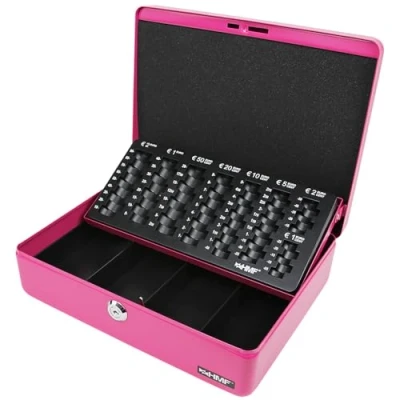 HMF 10015 15 Cash Box with Euro Coin Tray 30 x 24 9 cm, Pink