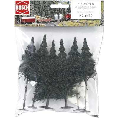 Set of 6 pine trees for HO scale model landscapes Realistic appearance with detailed foliage and trunks Various heights and shapes for natural scenery composition Easy to install and enhance the visual appeal of your layout, Manufacturer: Busch