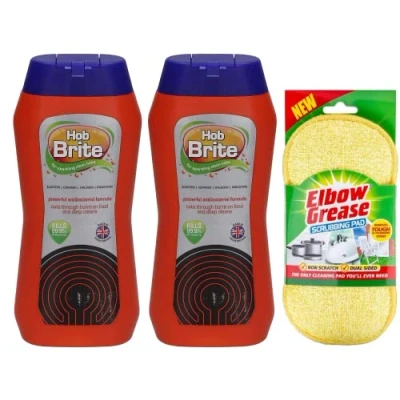 Hob brite cream cleaner, a powerful and fast acting cream hob cleaner for ceramic, halogen, electric, induction hubs. A specially designed hob cleaner formula that cuts through the toughest grease and grime leaving your hob sparkling clean. Effective for removing burnt-on food residues and bacteria from your hob. Use regularly to Leave a film on hob top that protects against staining and bacteria growth. Multipurpose Scrubbing Pads: Dual sided cleaning pads suitable for use on ovens, bathroom, dishes, microwave, floors, toilet showers etc. Soft side (non-scratch) is perfect for delicate surfaces and abrasive side is ideal for removing stubborn stains from oven, surfaces, etc. Pack contains 2X hob brite hob cleaner and 1X multipurpose scrubbing Pad