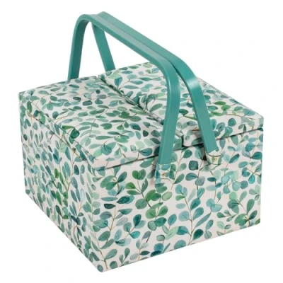 Hobby Gift Exclusive Large Twin Lid Sewing Craft Storage Box, Accessories Tray Pin Cushion Pockets PVC Handles, Eucalyptus, 25 x 17cm