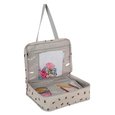 Hobby Gift Exclusive Project Case Sewing & Yarn Storage, Craft Knitting Bag for Classes Travel, 3 Plastic Pocket Inserts Accessories Organising 100% Cotton 34 x 28 12cm Bees
