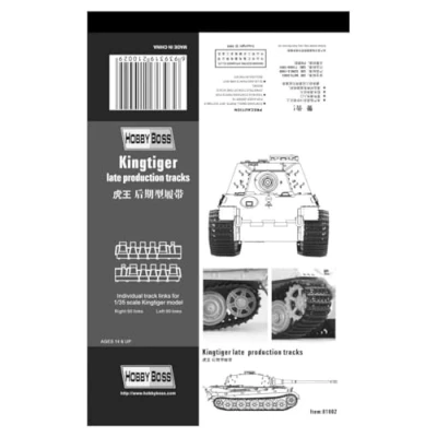 Easy assembly authentic kit. Requires construction. Kingtiger late production tracks 1:35 scale 90 links for each side., Manufacturer: Hobbyboss