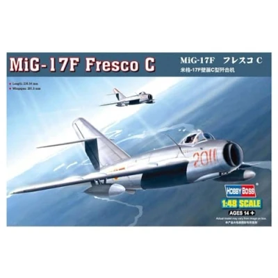 Easy assembly authentic kit. Requires construction. MiG-17F Fresco C Optional position flaps Highly detailed engine., Manufacturer: Hobbyboss
