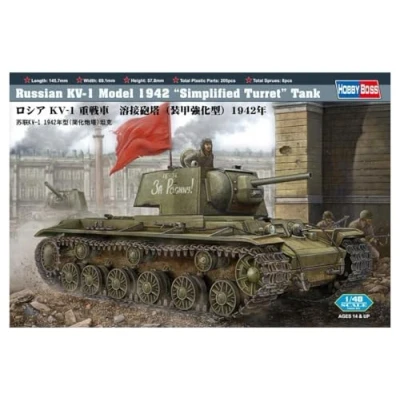 Easy assembly authentic kit. Requires construction. Russian KV-1 Model 1942 Photo etched parts included 1:48 scale, Manufacturer: Hobbyboss