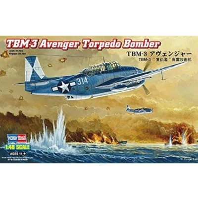 Easy assembly authentic kit. Requires construction. TBM-3 Avenger Torpedo Bomber Length 256.4mm, Wingspan 350.6mm 1:48 scale., Manufacturer: Hobbyboss