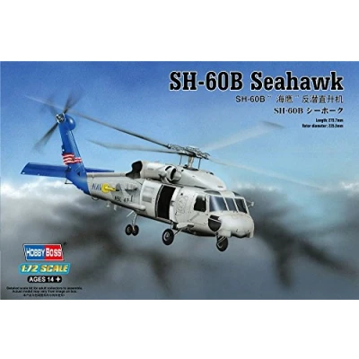 Easy assembly authentic kit. Requires construction. Left and right fuselage are slide moulded with fine detail SH-60B Seahawk 1:72 scale, Manufacturer: Hobbyboss