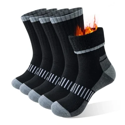 Hocerlu Thermal Mens Socks, 5 Pairs Thick Cushioned Warm Wool Comfy Breathable Winter Outdoor Work Boot socks for Walking Hiking Trekking, UK 6 11.