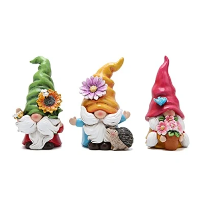 Hodao Set mit 3 Frühlingswichtel Dekorationen, Blumenzwergen, Ornamente, Dekoration, Geschenke, Sommerzwerge, Figuren, Frühlingsskulpturen, Geschenk für Outdoor Dekoration (mehrfarbig)