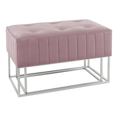 Hodge and Nesting Ottoman Stools Set Of 2 Velvet Pouffes Silver Metal Legs Pink