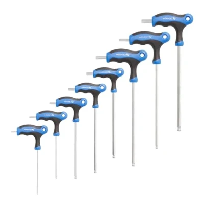 MAXIMUM STRENGTH & DEFORMATION RESISTANCE The alloy S2 steel is known for its high strength and durability, which means these keys can withstand even the most demanding tasks without deforming or breaking. IDEAL FOR TIGHT SPACES The long design of the keys allows it to work in tight and hard-to-reach areas where conventional tools may not be used. EXTENDED PROFILE FOR MORE LEVERAGE The extended shape of the keys allows for increased leverage, which makes loosening or tightening screws easier with less effort. Ball head for versatile angles: the ball head of the keys allows it to be used at an angle of up to 30 degrees. This is especially useful when you need to work in hard-to-reach areas and cannot access the screws directly. Allen key set hexagon socket set. Comfortable T-shaped handle: the T-shaped handle ensures a comfortable and secure grip, which makes handling the keys easier and reduces hand fatigue.